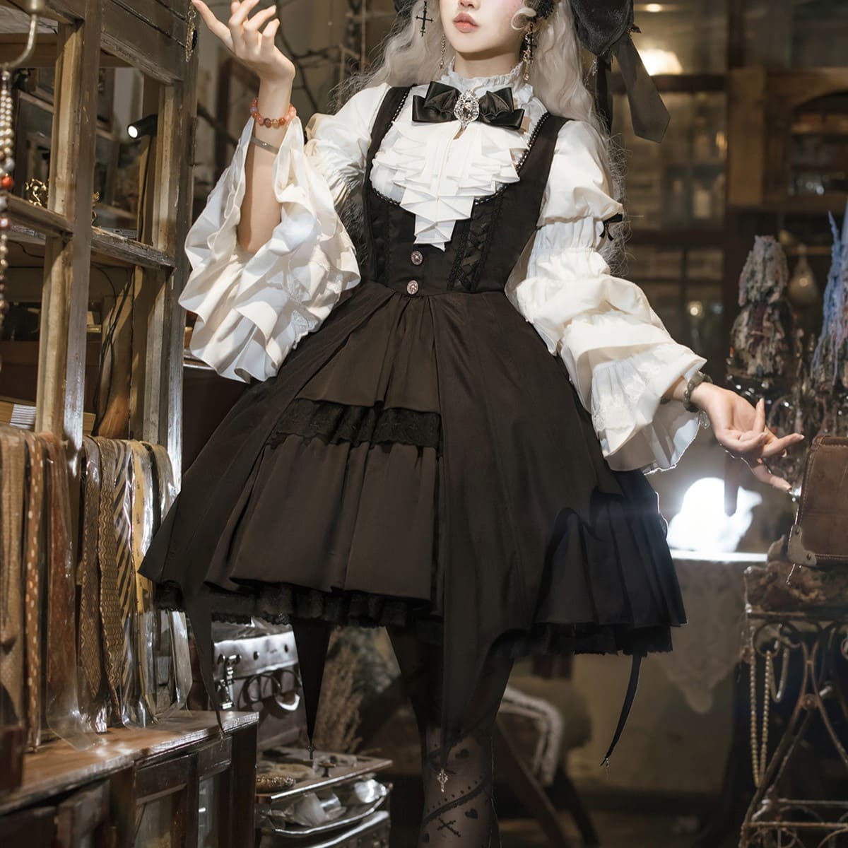 ゴシックロリータスタイルの魅力を最大限に引き出す、エレガントでミステリアスなデザインのジャンパースカート♡