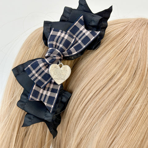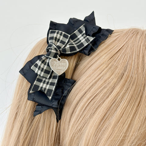 クラシックなチェック柄とリボンがロリータスタイルを一層引き立てる、甘くもシックなヘアクリップ🎀✨