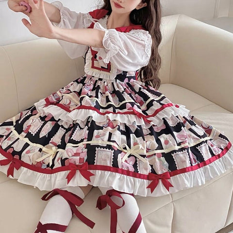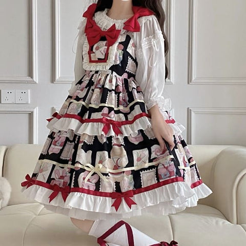 黒薔薇と苺ミルクの舞踏会ジャンパースカート(全2色)