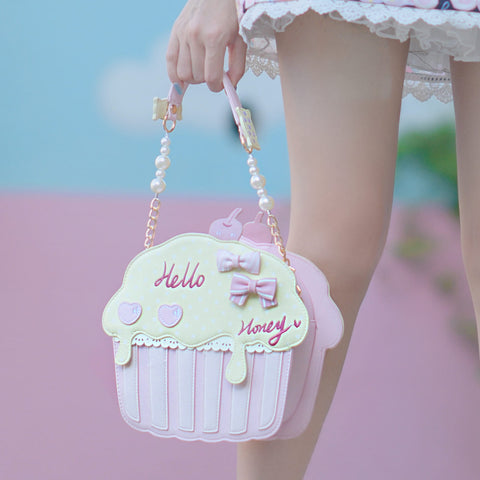 - カップケーキデザインが特徴的なバッグで、キュートなデザインが目を引きます🧁
