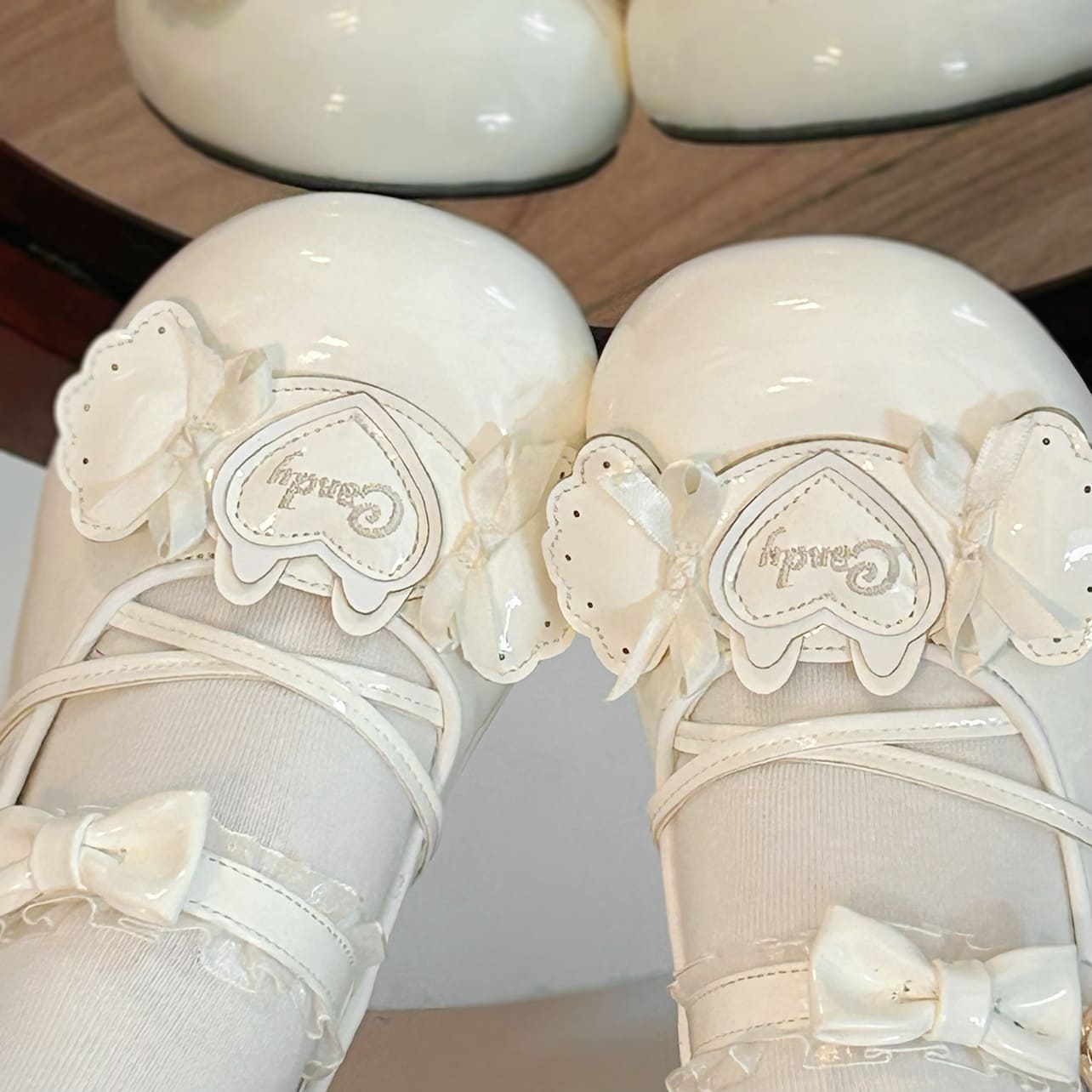 キュートなハートモチーフとリボンがたっぷりあしらわれたシューズで、足元から可愛らしさを演出してくれます🎀