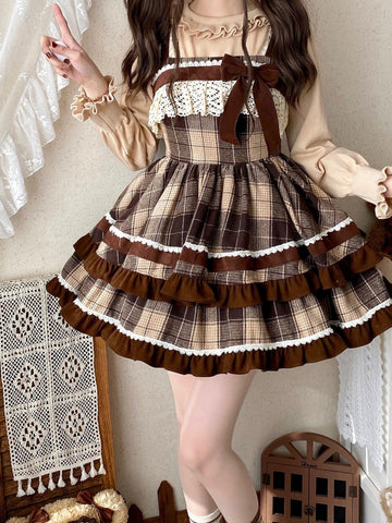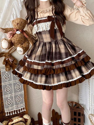 クラシカルなチェック柄と甘さのバランスが絶妙なジャンパースカートで可愛さをアップ🧸🤍