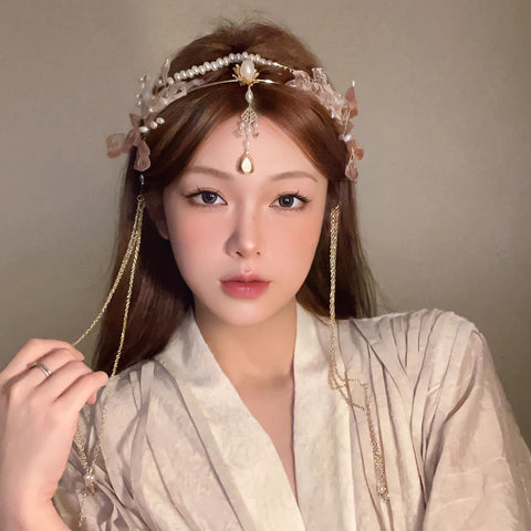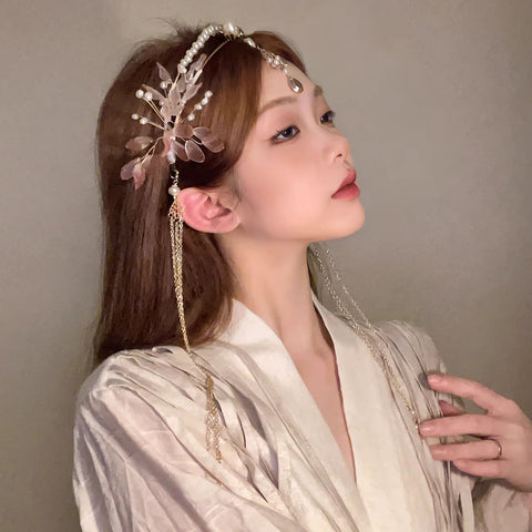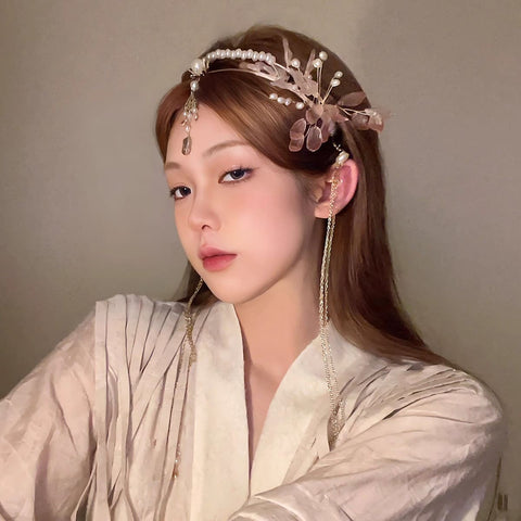 繊細なビーズと花飾りが美しく、幻想的な雰囲気を醸し出すヘアアクセサリー✨