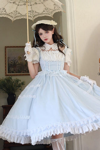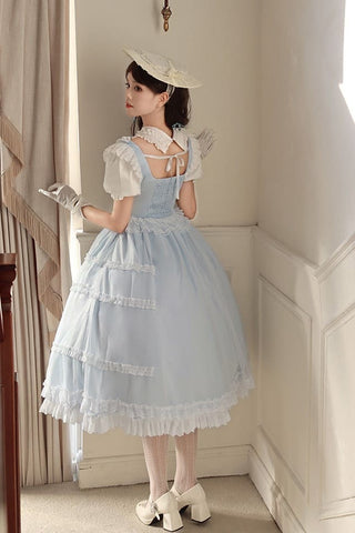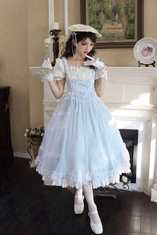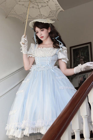 優雅なブルーレースが施された、クラシカルで夢見るようなロリータワンピース。
