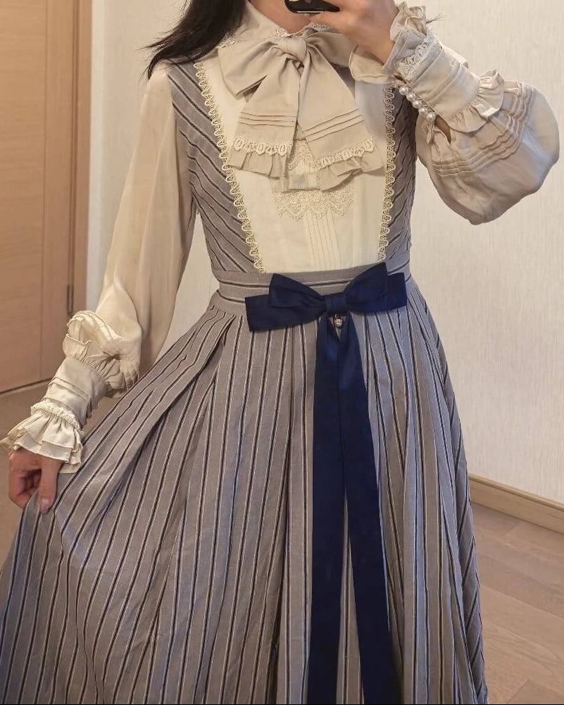午後の音楽会とリボンのメヌエットワンピース(全3色)