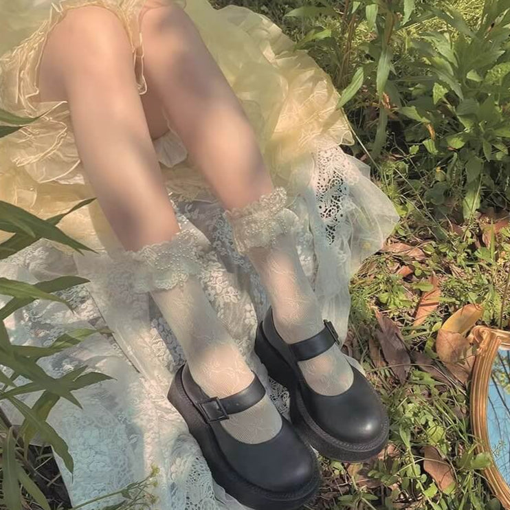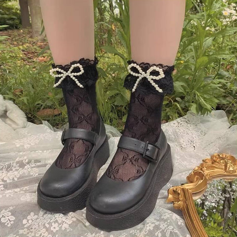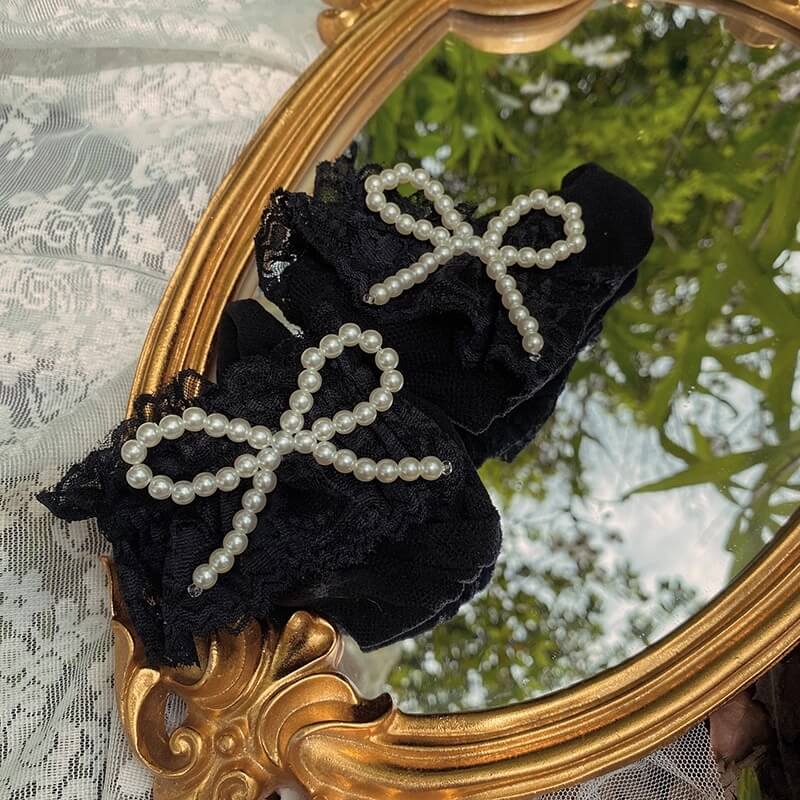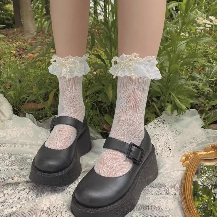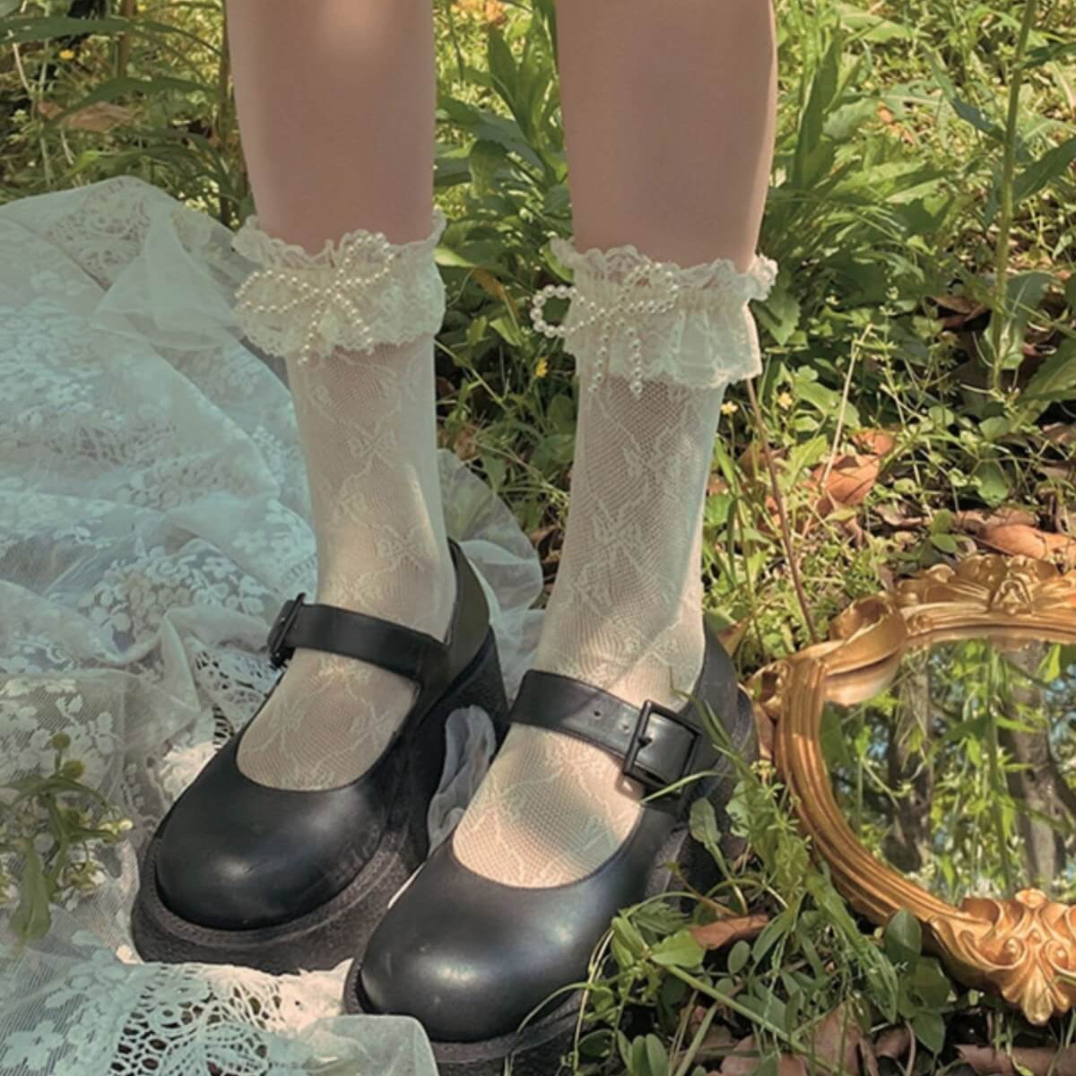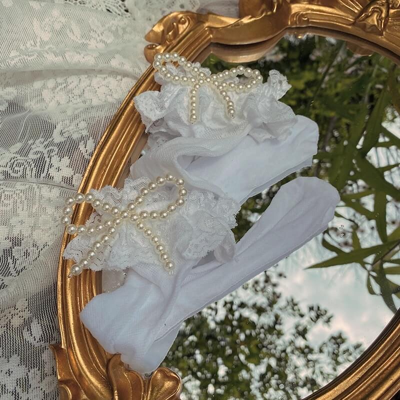 レースとパールのディテールが上品さを演出する、主役級ロリータソックス